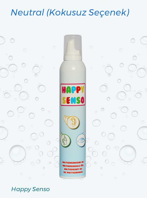 Terapi Köpüğü Happy Senso Çoklu Duyu (Multisensory) özelliklere sahip bir jeldir. 300 ml’lik şişelerde sunulmaktadır. Dokunma, Görme, Duyma ve Koklama duyularını aynı anda, eğlenceli bir şekilde uyarır. Duyu uyarımı (Sensörik Stimülasyon) için harika bir materyaldir. Cildinizde "patlayan şeker" gibi hissettiren, serinletici ve eğlenceli bir etki sunar. Çalışma sonunda uçarak kaybolur, kalıntı bırakmaz. Yıkama gerektirmez. Dermatolojik olarak test edilmiştir. Paraben içermez ve hipoallerjeniktir.